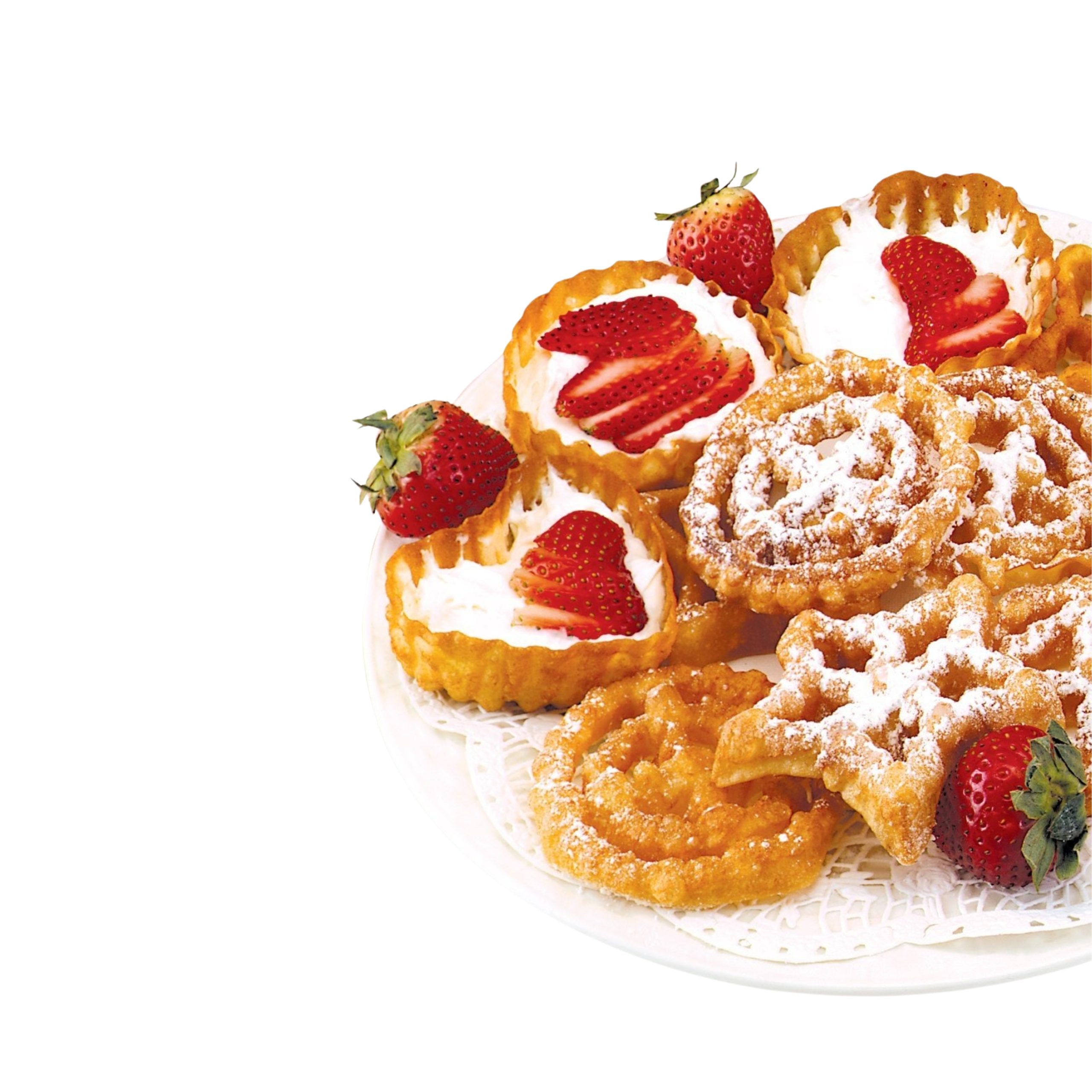 The Norpro Cast-Aluminum Rosette/Timbale Set (7-Piece) makes it easy to recreate authentic Scandinavian treats at home. This sturdy and versatile set includes three rosette molds (flower, star, and round) and three timbale molds (heart, square, and floral), along with a 2-pronged lifting tool featuring a stay-cool wooden handle to protect your hands while working with hot oil.