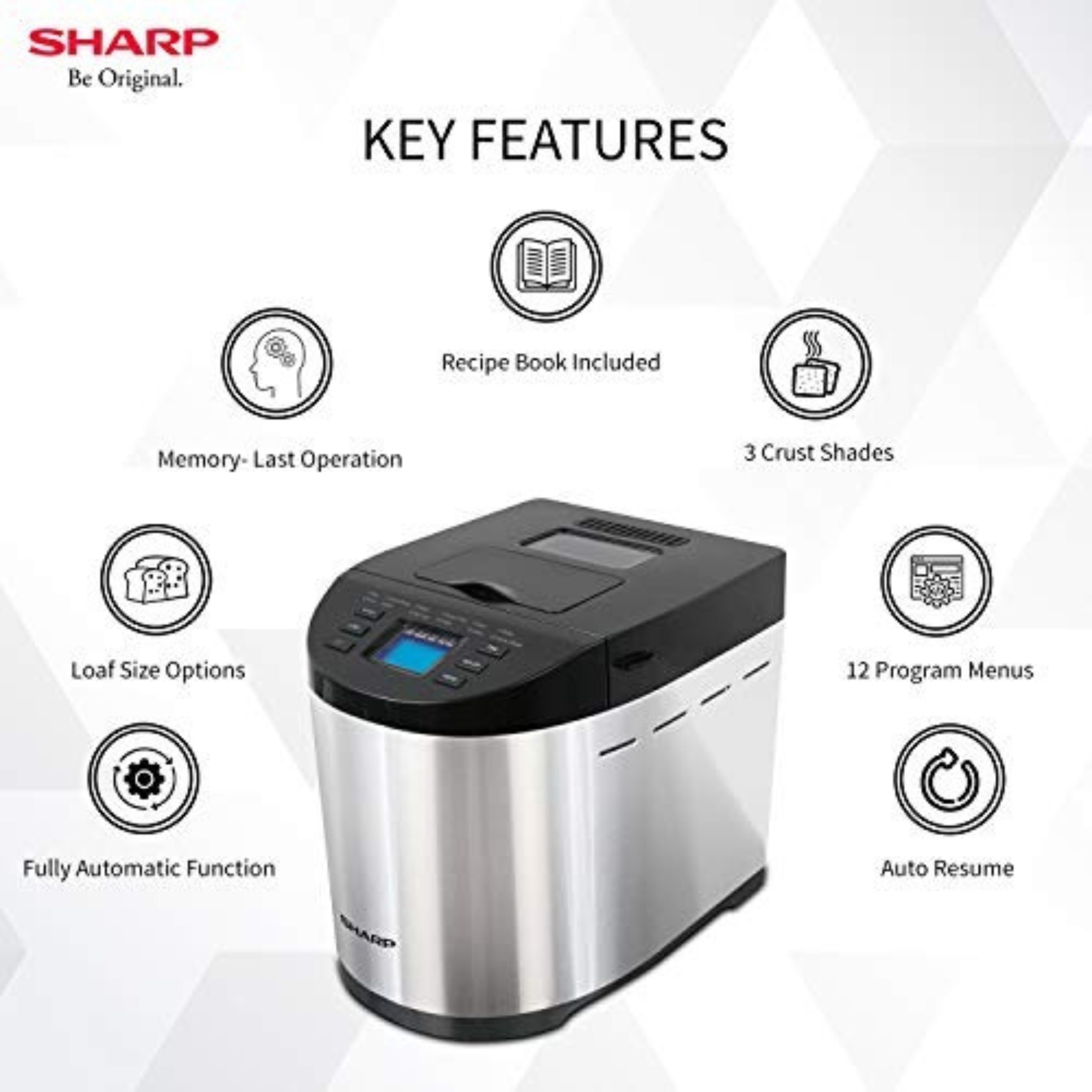 The SHARP Automatic Atta Bread Maker with LCD is designed to bring convenience and quality to your kitchen. With its durable stainless-steel body, backlit LCD display, and soft-touch controls, this bread maker offers style and performance. It comes with 13 preset programs including Basic, French, Whole Wheat, Gluten-Free, Dough, Cake, Jam, and more — allowing you to bake fresh loaves with ease. Its fruit and nut dispenser ensures even mixing, while the adjustable browning control (light, medium, or dark) gives you the perfect crust every time. From kneading dough for rotis to baking delicious homemade bread, this versatile 600-watt bread maker is your all-in-one kitchen companion.