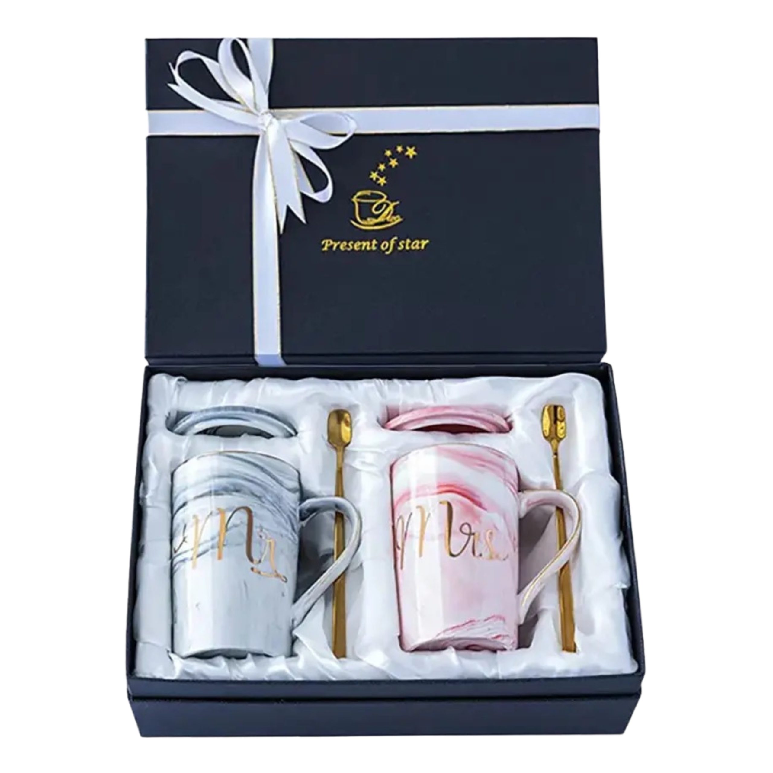Wake up to love with this beautiful Mr. & Mrs. Couple Ceramic Coffee Mug Set by SHOPPOFOBIX. Designed with a sleek modern look, these mugs come with matching lids and spoons, making them an ideal choice for couples. Perfect for daily coffee, tea, or hot chocolate, they also make thoughtful gifts for weddings, anniversaries, birthdays, Valentine’s Day, engagements, and housewarming events.