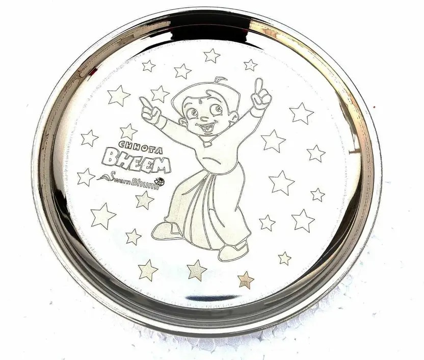 Make mealtime fun and exciting for your little ones with the Swarn Bhumi Super Chhota Bheem Steel Dinner Set. Specially designed for kids aged 1–6 years, this set is crafted from high-quality stainless steel, ensuring durability, hygiene, and long-lasting use. The permanent laser-printed Chhota Bheem design adds a playful touch, making every meal enjoyable for children.